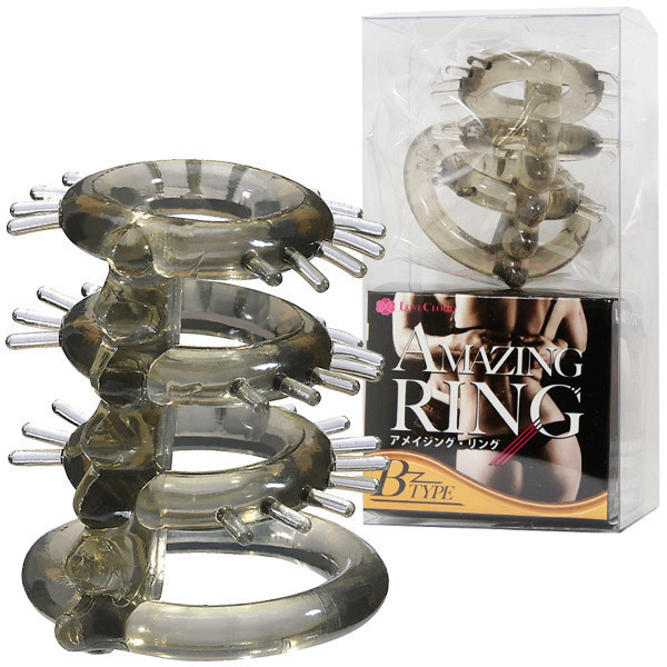 新しい刺激と快感に出会える!男根をしっかりと締め付け、持久力アップを強力にサポートする4連リング仕様の男性補助グッズ。