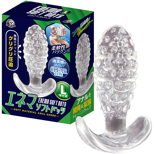 表面に配置された無数のドットイボによる圧迫感が心地良い「エネマソフトドッツL」です♪アナルの開発や拡張に最適なプラグで、開発レベルに合わせて3サイズから選ぶことができます。